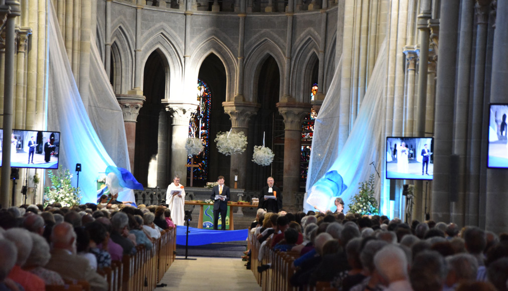 la célébration a démarré à 16h. Placée sous le thème du souffle de l’Esprit, la célébration a alterné temps de célébration « classiques », témoignages vidéo, performances de danse artistique et moments officiels.